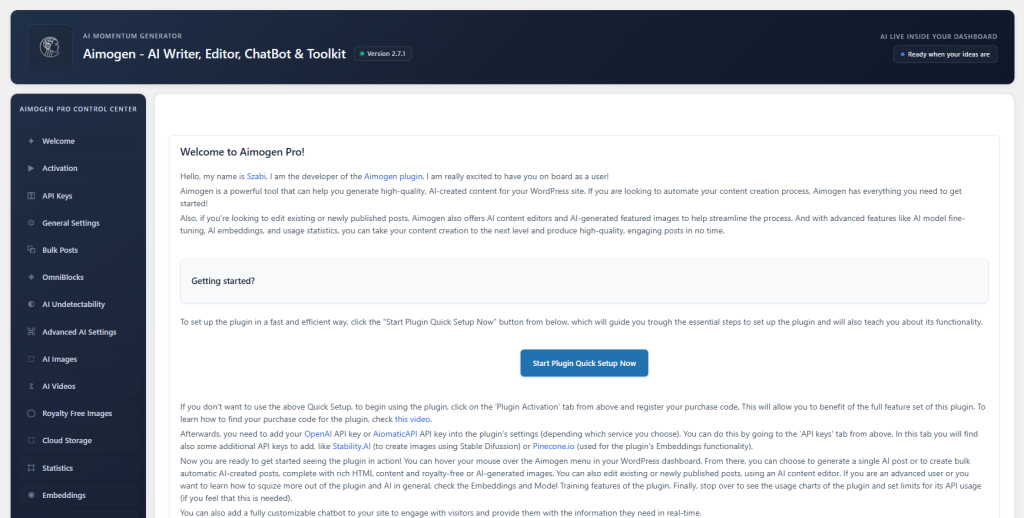 Aimogen is the direct continuation of Aiomatic. When the plugin was renamed, the intent was not to reboot or rebuild the product under a different identity — it was to remove a trademark conflict without interrupting the development trajectory. As a result, nothing meaningful in the code, features, or user experience was removed, deprecated, or fundamentally altered simply because of the name change. The plugin you knew as Aiomatic became Aimogen with the same internal engine, the same feature set (and expansions), the same data structures, and the same development roadmap.