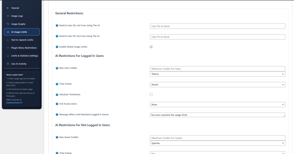Aimogen limits often count API calls, tokens, retries, background jobs, chatbot messages, image generations, and maintenance runs. A single visible action can trigger multiple invisible requests.