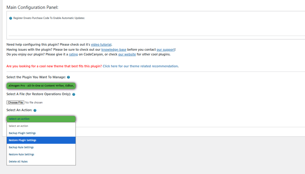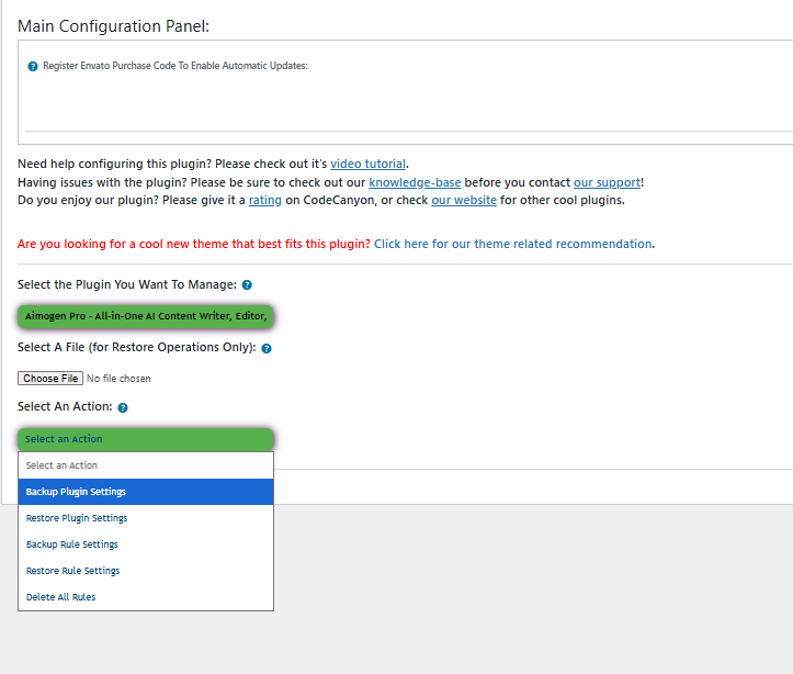 For that purpose, you can use the CodeRevolution Configuration Import/Export Helper Plugin for WordPress (the plugin you linked from CodeCanyon). This helper gives you a standard way to export Aimogen’s settings and then import them into another environment.